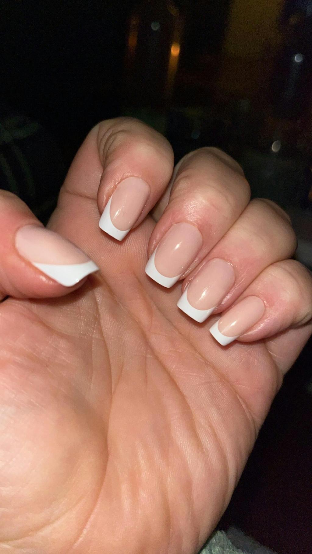 Ny form: Vårt nyaste tillskott i modeller som är här på ett tillfälligt besök. Perfekt för dig som känner att vår nuvarande square-modell är för kort och behöver en längre nagel för att täcka hela nagelbädden. Och vad är inte mer klassiskt än en fransk manikyr! Här med vår populära basfärg ”Warm” och vit kant. En stil som fungerar minst lika bra på jobbet, som på AW’n eller semesternV.