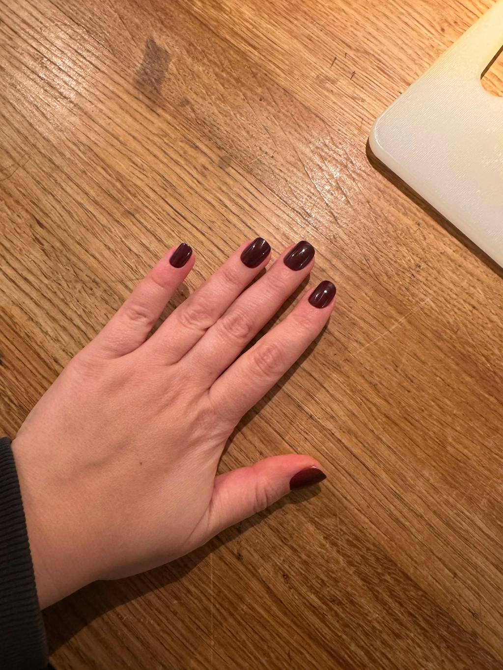 Apply the press-on nails on your dominant hand first. Place the press-on nail at the base of your nail and slightly push it under your cuticle. Fold it down, hold and press for about 10-20 seconds. Apply the thumbs last. This should never hurt! If so, you need to go up a size or try a different shape.