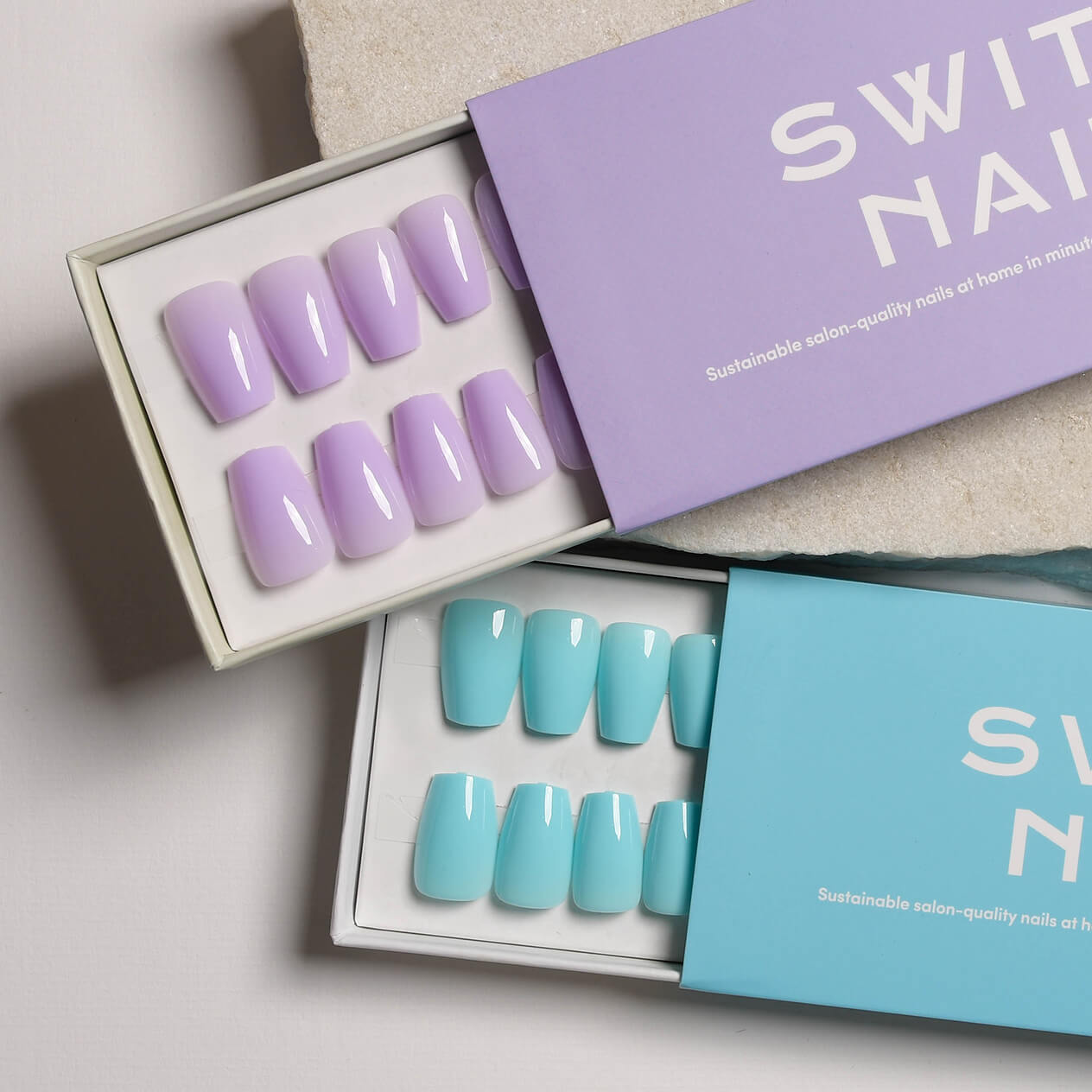 Our press-on nails are made of recycled ABS-plastic with a design and gel topcoat on top to give the impression of a salon gel manicure! When it comes to our models with a painted design that differs from the base color, we recommend using your favorite topcoat on top to avoid wear and tear so that you can reuse your nails on multiple occasions. With the right application and fit, you can get a long-lasting result for up to 1-2 weeks!