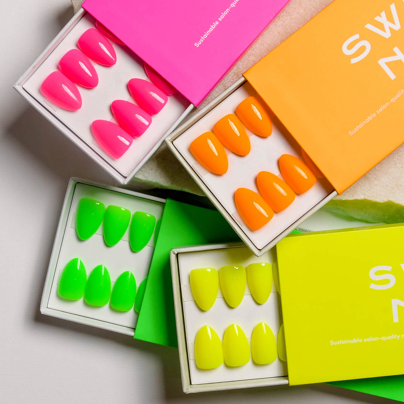 Tässä combo on Disco Tangerine, Electric Banana, Legwarmers ja Totally Lime suositussa almondinmuodossa. Huomio: komboja ei voi yhdistää muihin tarjouksiin tai vaihtaa muihin malleihin.