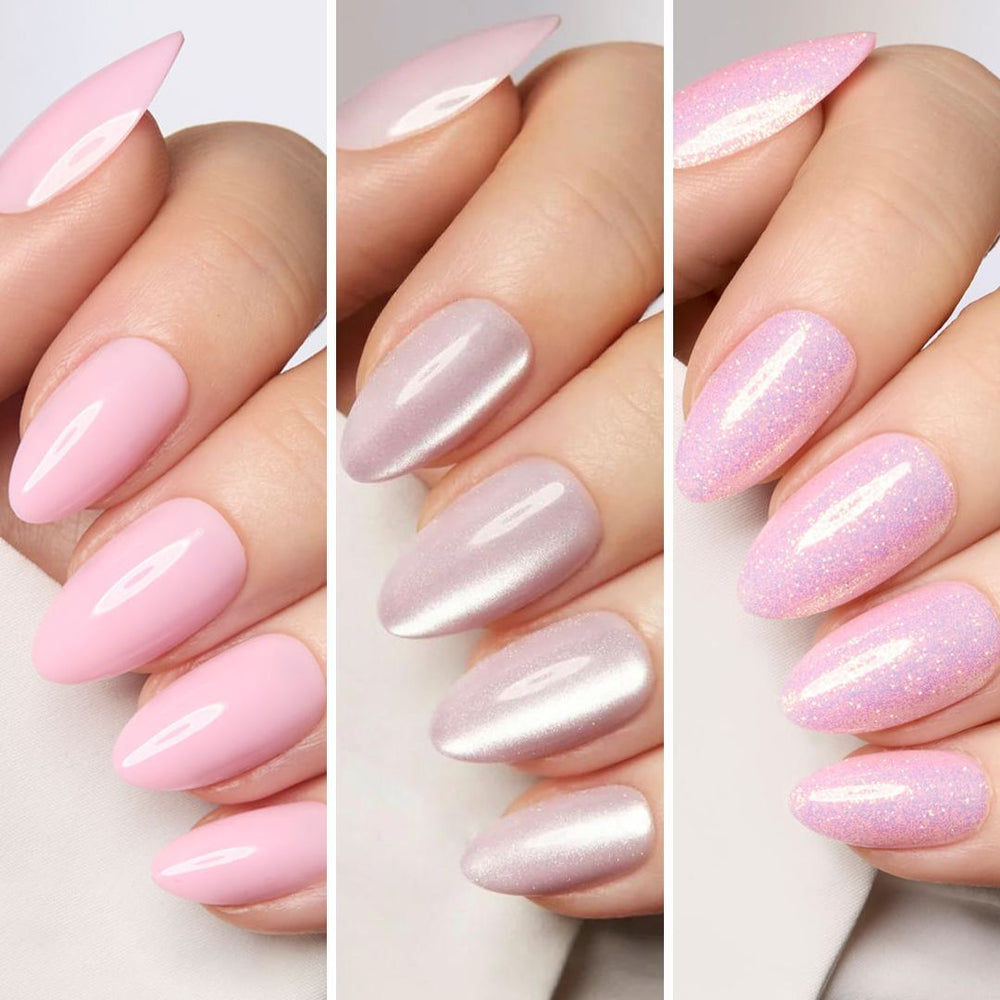 • Halvtransparent: Skjøre nyanser der neglesengen delvis synes.