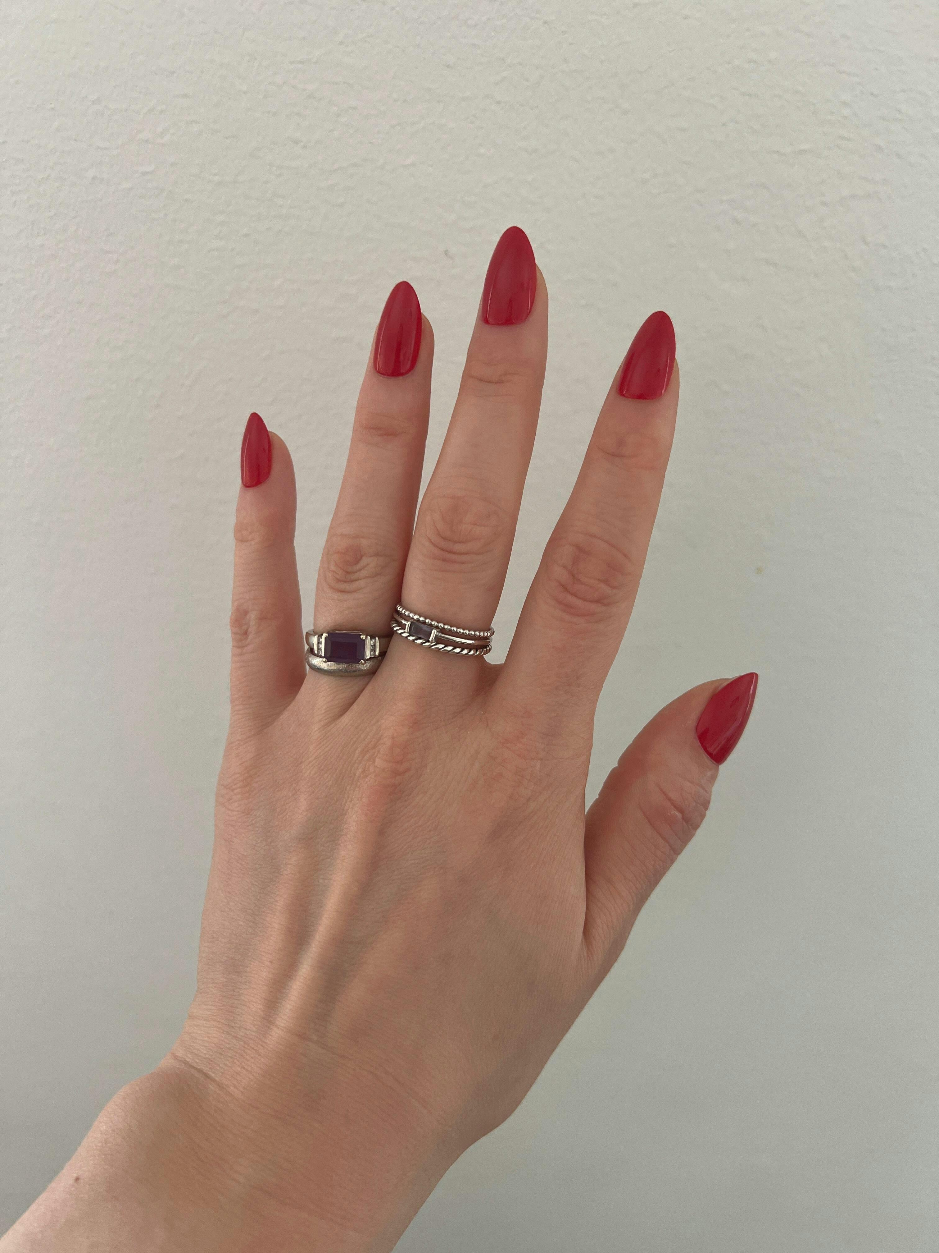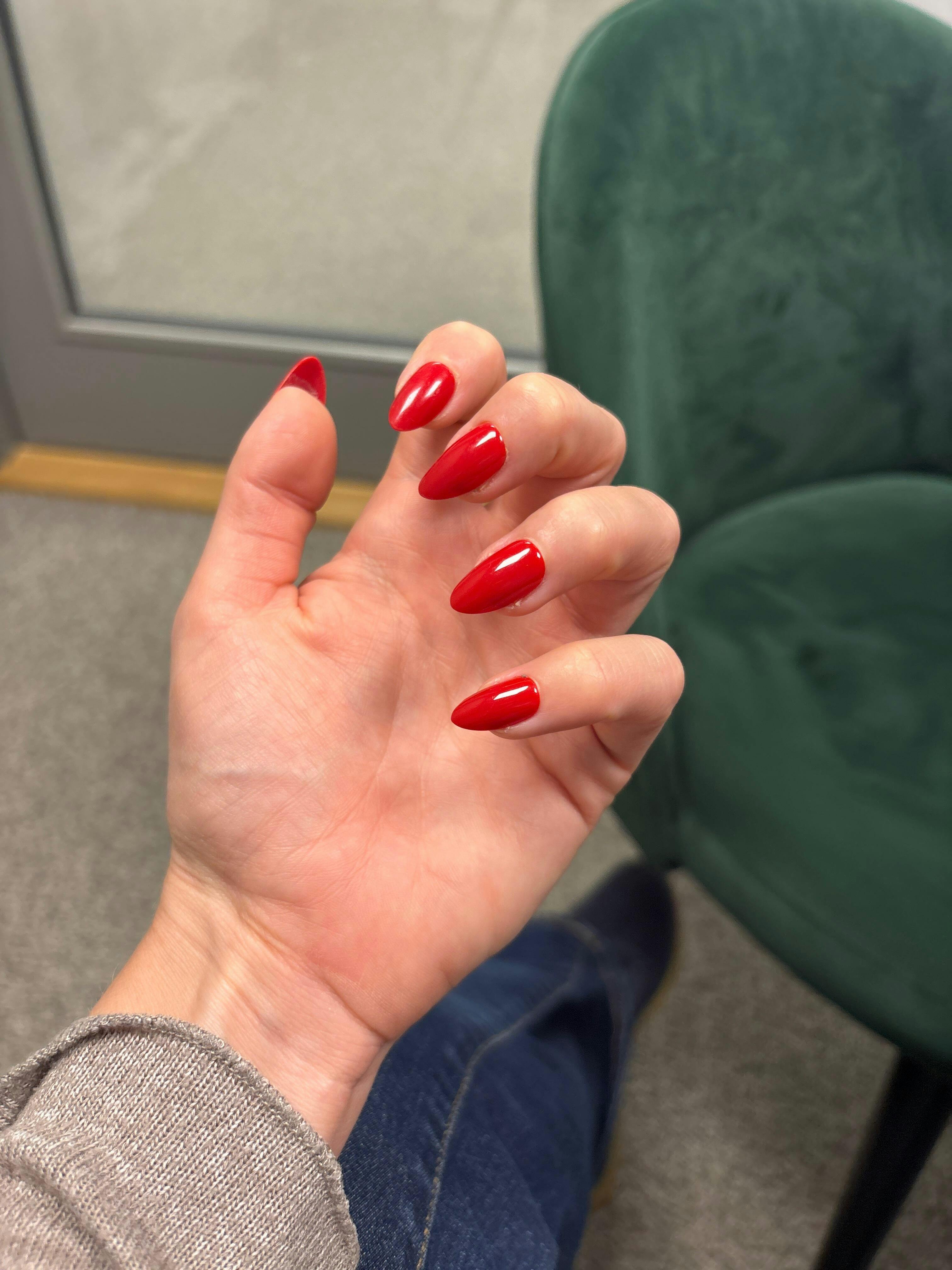 Lätt att applicera men gör lite ont att ta bort. Håller bra! Jag har långa nagelbäddar så almond täckte inte hela min naturliga nagel på vissa fingrar.