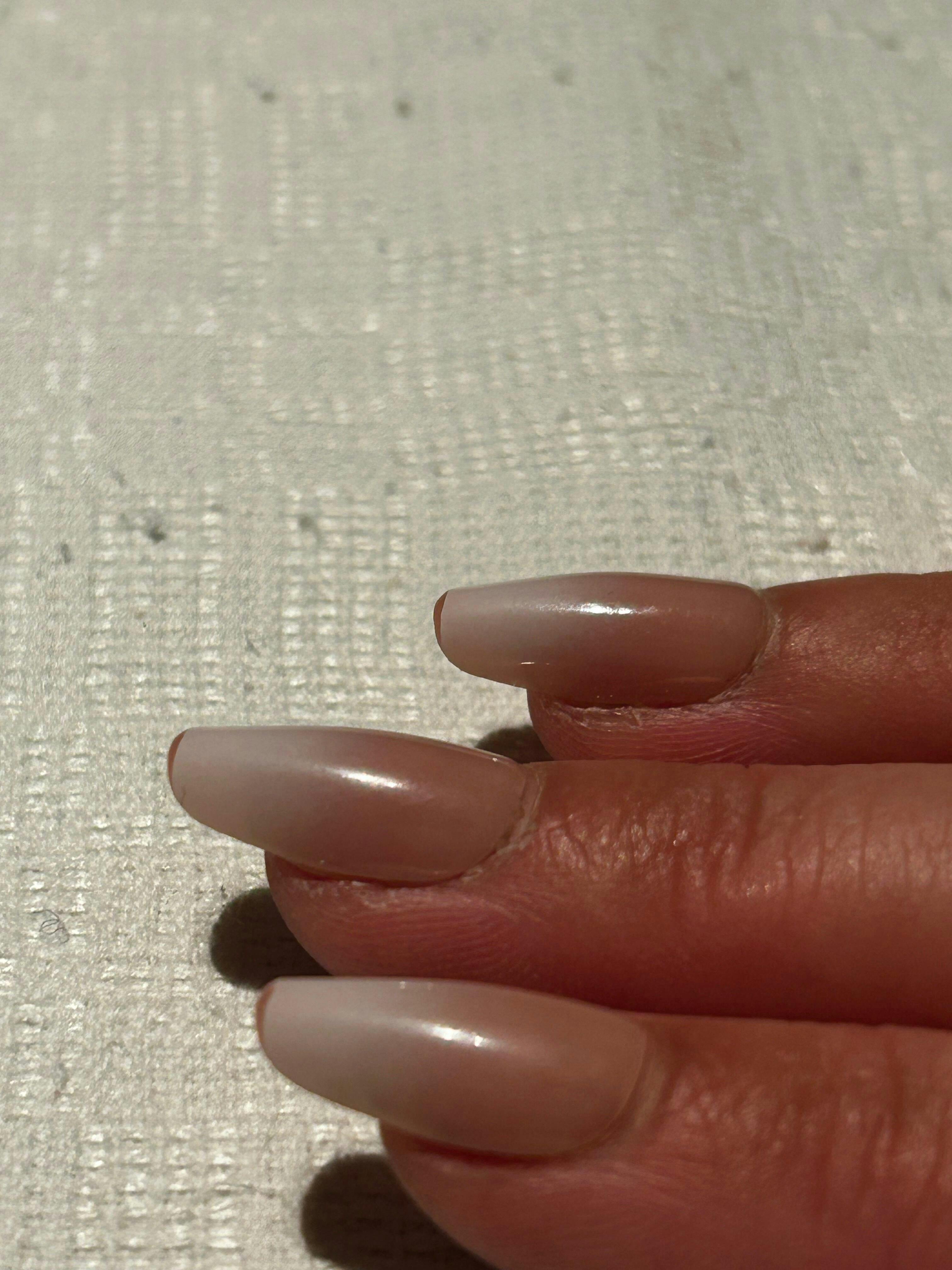 Alla våra naglar har noggrant utvecklats för att se realistiska ut och som att du har spenderat timmar på nagelsalongen. Vi använder den en "Europeiska" stilen när det kommer till struktur, där apex (den högsta punkten) är placerad längre bak på nageln och nageln kommer rakt ut från fingret och lite uppåt när man tittar från sidan, istället för att peka nedåt.