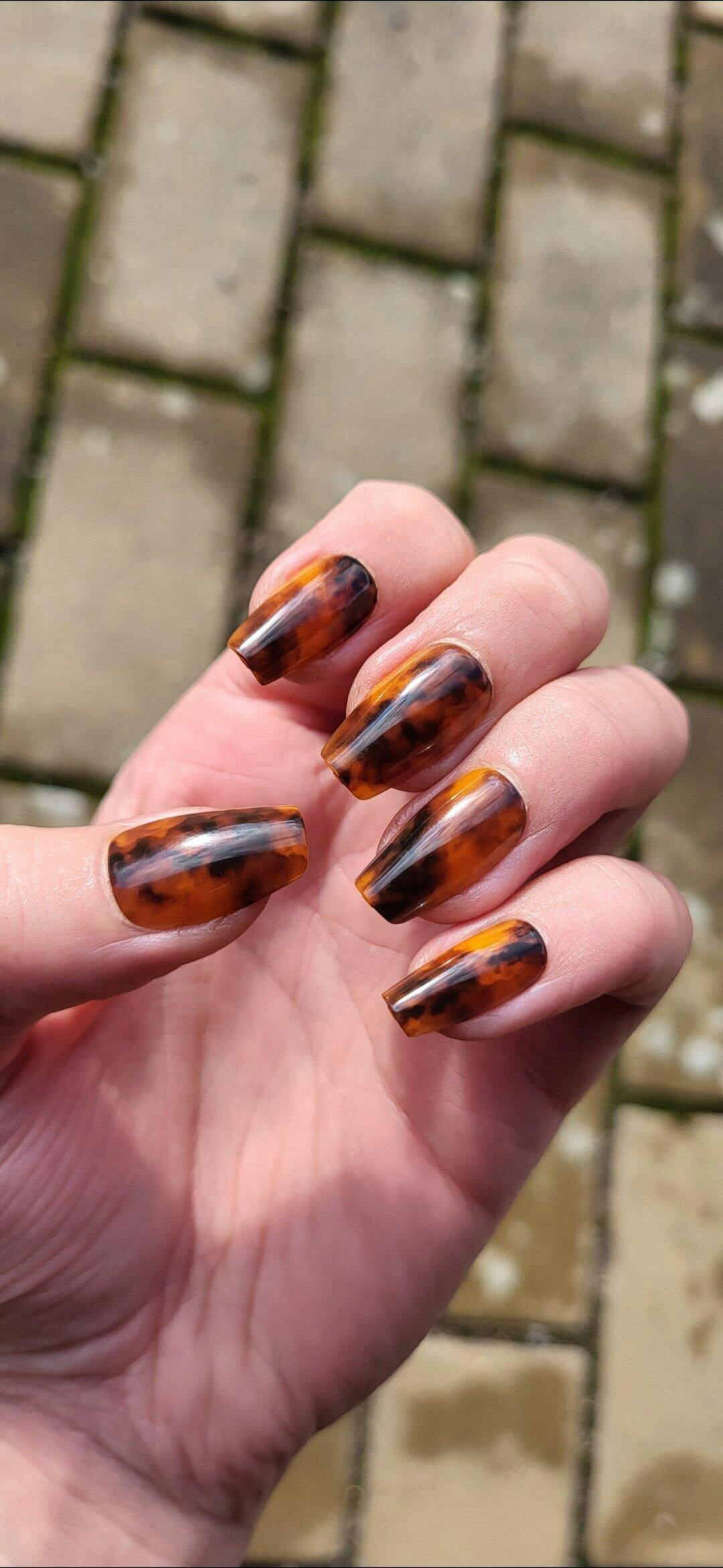 Våra press-on naglar är gjorda i återvunnen ABS-plast med en design och gel topcoat ovanpå för att ge ett intryck av naglar som är målade på salong! När det kommer till våra modeller med en målad design som skiljer sig från grundfärgen rekommenderar vi att använda ditt favorit-topplack ovanpå för att undvika slitage så att du kan återanvända dina naglar vid flera tillfällen. Med rätt applicering och passform kan du få ett hållbart resultat i upp till 1-2 veckor!
