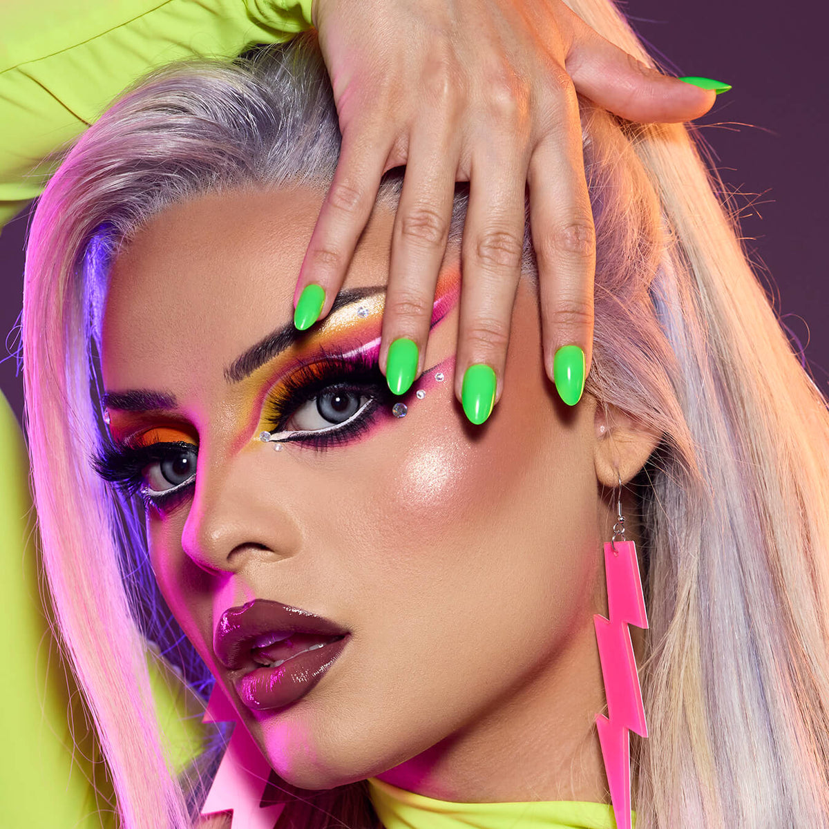 Flashback till 80-talet med elektriska nyanser som lyser av attityd. Från en pigg lime till en disco orange – den här kollektionen tar verkligen plats utan att be om ursäkt för det.